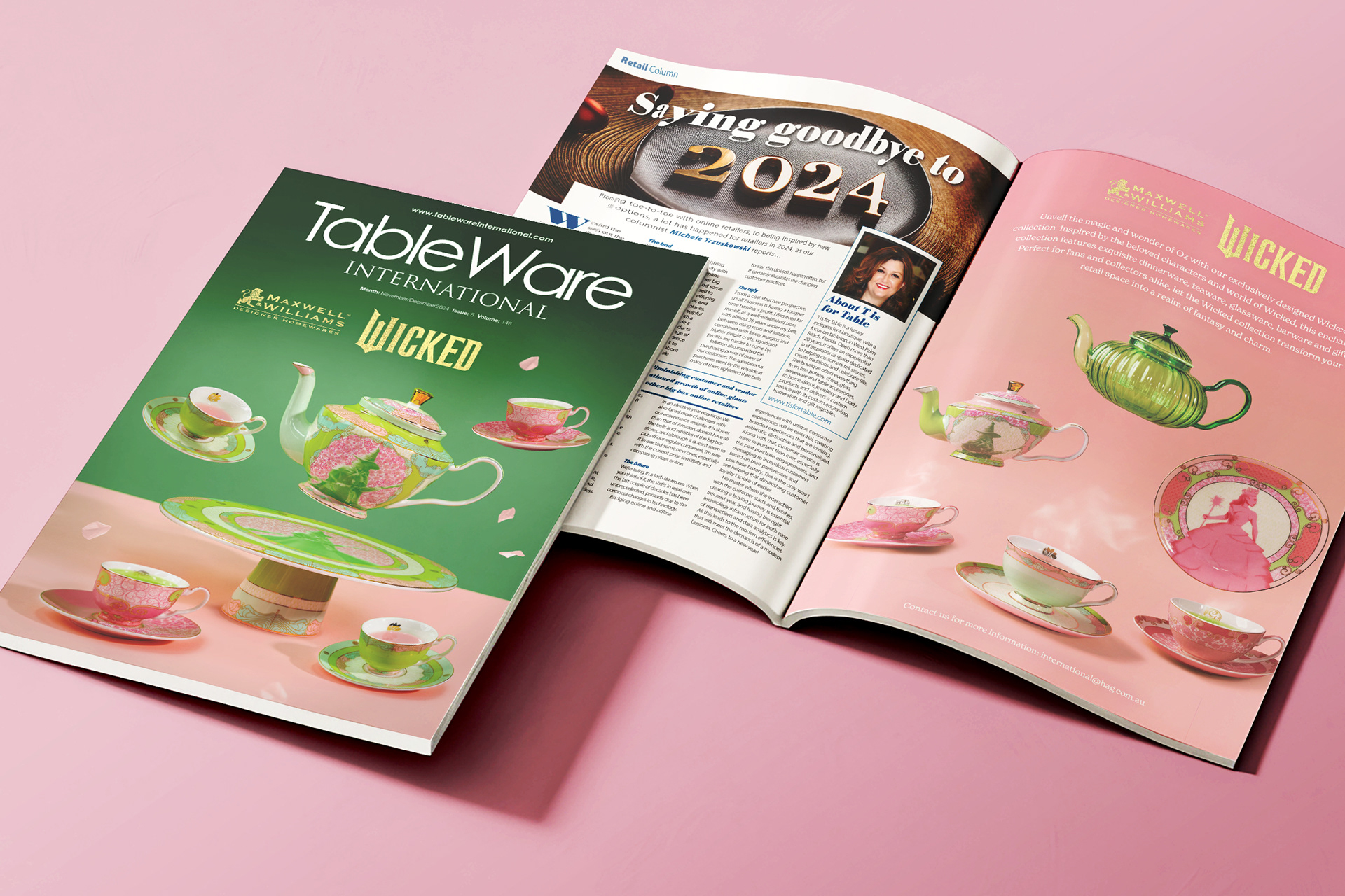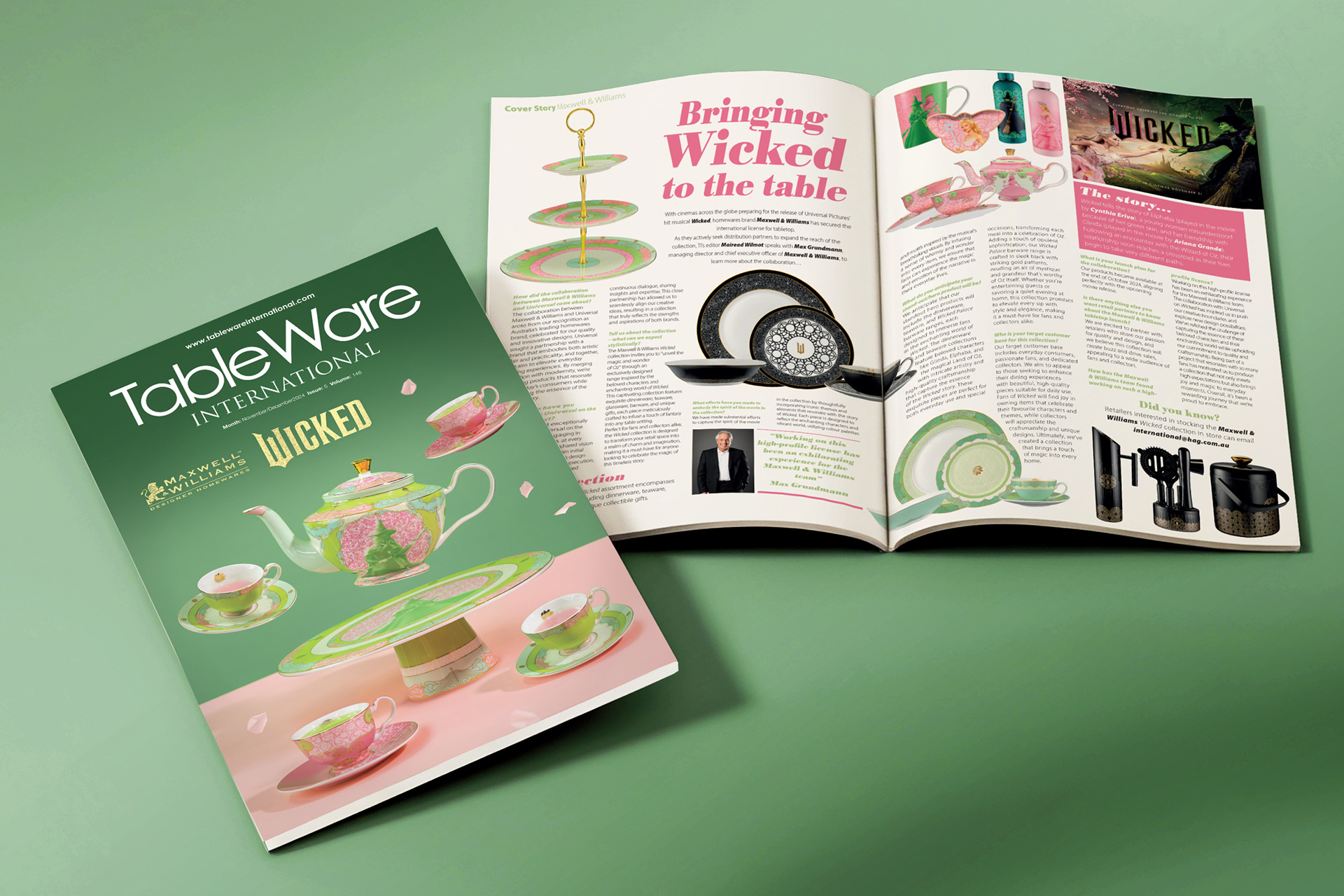 Designed and produced an editorial magazine cover and feature for Maxwell & Williams, created to present their Wicked licensed homewares range to TableWare International. The project required close alignment with Universal Studios’ licensing and approvals process, balancing theatrical storytelling with clarity and production accuracy. Art direction included practical set builds, suspended product photography, and compositing to introduce movement and spectacle while maintaining retail realism.